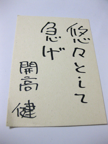 会社の大大大先輩、開高健さんの言葉が書かれたハガキが届きました。家族ぐるみでお付き合いさせて頂いているカズさんが送って下さったのです^^