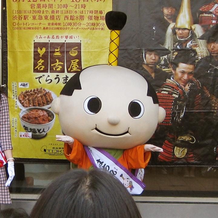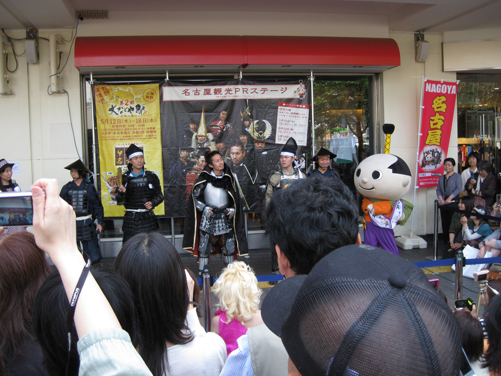 そして、本日。三重からめーこが遊びに来ていたので名古屋河合のえり、あややと4人で渋谷に遊びに行きました。待ち合わせのハチ公前がなにやら騒がしい。すると間もなく、名古屋のおもてなし武将隊が・・・!!