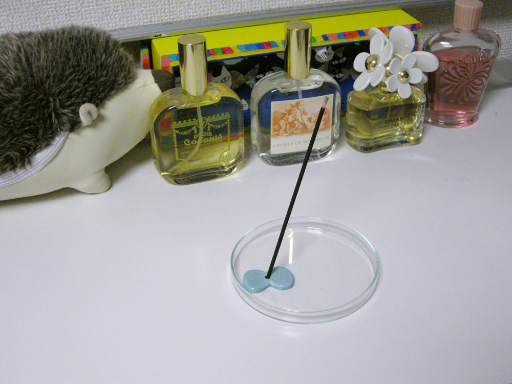その後、minaで蝶々型のお香立てを購入。以前お香だけ頂いていたんだけど、お香立てがなくて使えずにいたので、家に帰って早速焚きました。良い香り〜。下にはミホからもらったシャーレを敷いております。